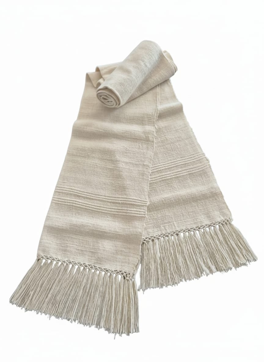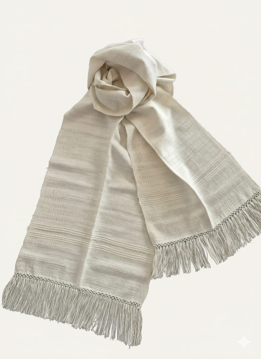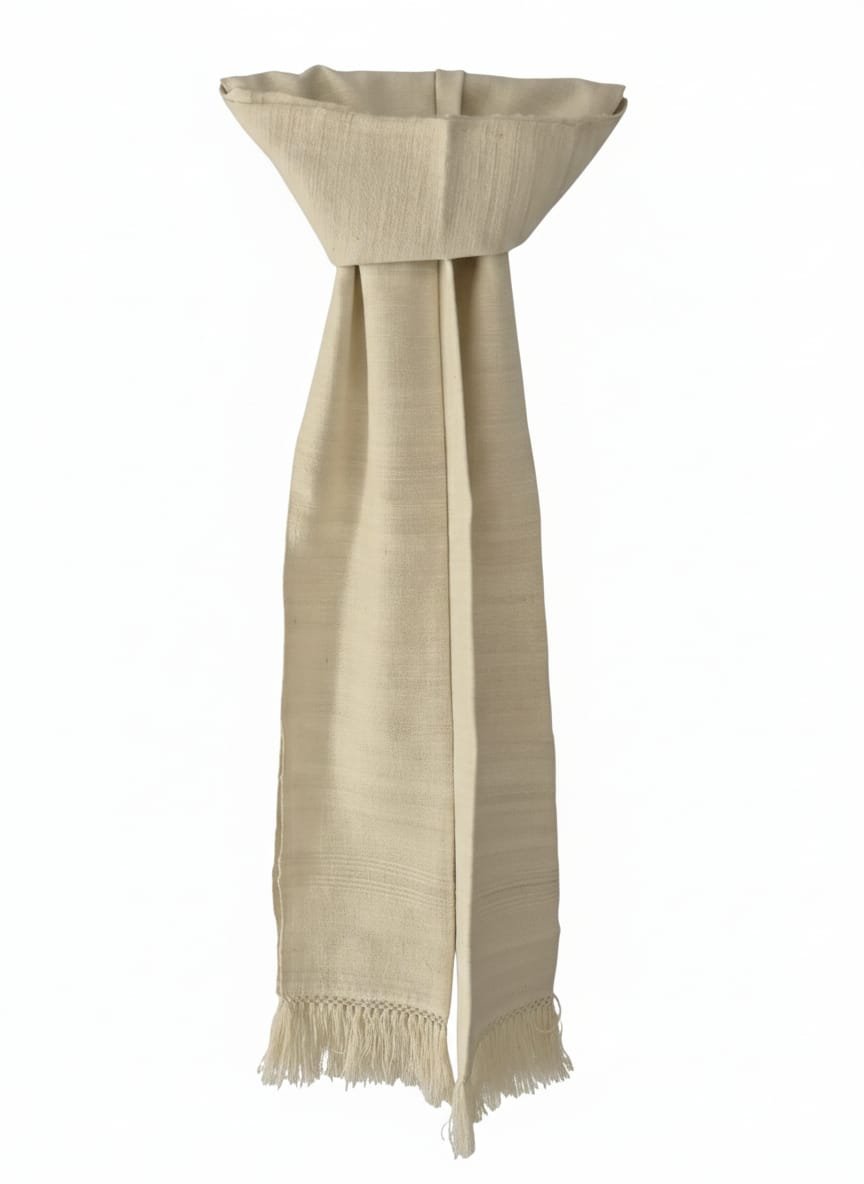 Certainly! The Eri Silk Stole in off-white (plain) is a beautifully handcrafted accessory made from Eri silk, also known as "Ahimsa silk" due to its ethical and sustainable production process. This stole is known for its soft texture, durability, and eco-friendly nature.Key Features: